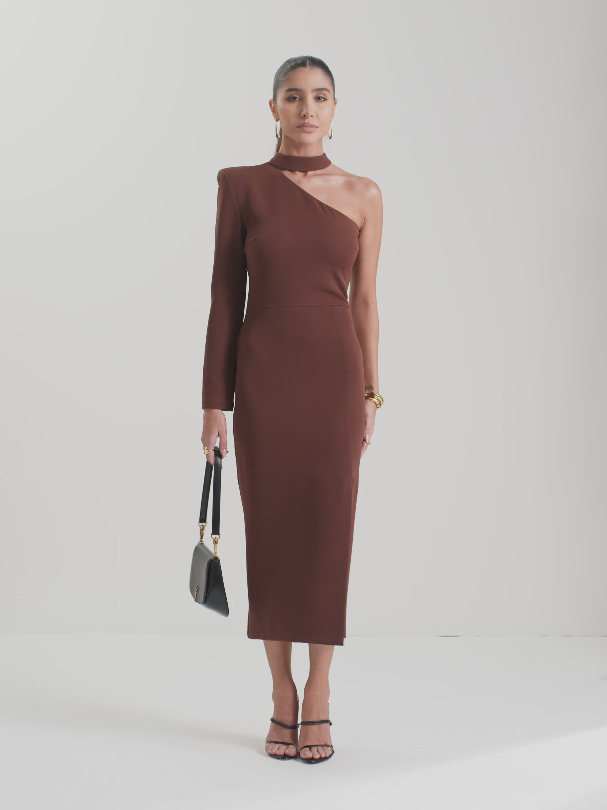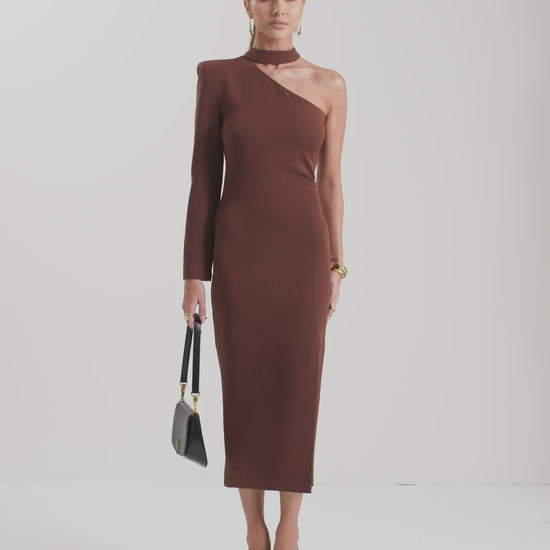 The Lidia Dress is the perfect choice for those seeking both impact and sophistication. Crafted from tailored fabric with elastane, it combines structure and comfort, ensuring a flawless fit with ease of movement. Its one-shoulder design adds modern elegance, while the side slit delivers just the right touch of allure. The deep brown hue enhances its refined appeal, making it ideal for special occasions and evening events. The Lidia Dress makes a bold statement!