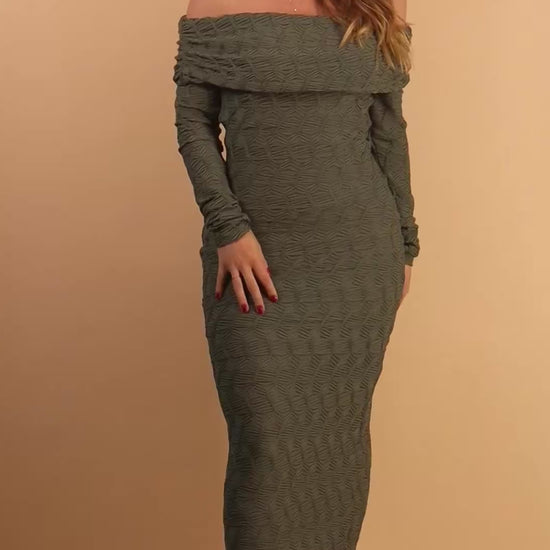 Green Textured Shoulder Midi Dress